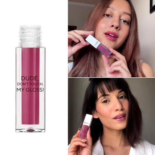 Regular price Rs. 299.00Regular priceUnit price / perSale price Rs. 299.00Dude, Don't Touch My Gloss MINI | Pigmented AF, Non Sticky Mini Gloss