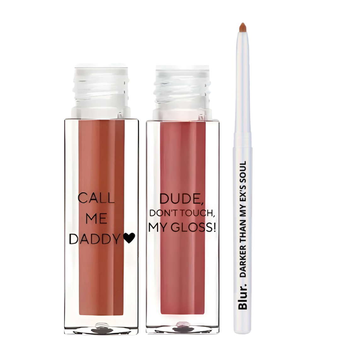 Dude Don’t Touch My Gloss (2.5ml): Our pigmented AF gloss contains the goodness of Vitamin E to soften and hydrate your lips and skin without making it sticky and icky. Our non-sticky baby is the perfect daily-wear gloss.